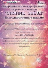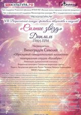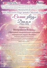 18 февраля в ДК "Синтетик" города Твери прошёл VII Всероссийской конкурс - фестиваль творчества и искусств "Сияние звёзд".