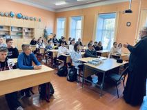 12 сентября настоятель храма Успения Пресвятой Богородицы протоиерей Владимир Альбертович Гуркало встретился с обучающимися 8-х классов МБОУ «Гимназия №2» и побеседовал с ними на тему «Ценности жизни».